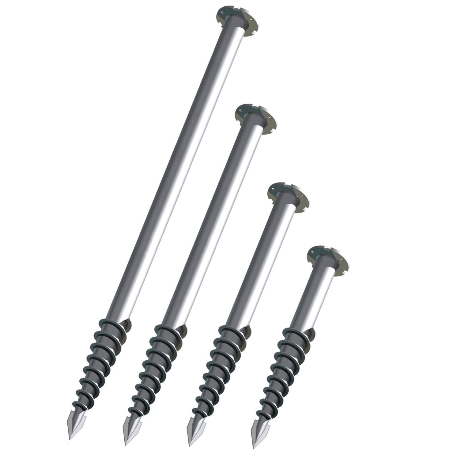 De verschillende lengtes en types funderingsschroeven zijn geschikt voor verscheidenene toepassingen en alle bodemsoorten.