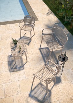 The Positano set combines elegance, durability and lightness. Made from recycled plastic, it is the ideal solution for outdoor use.