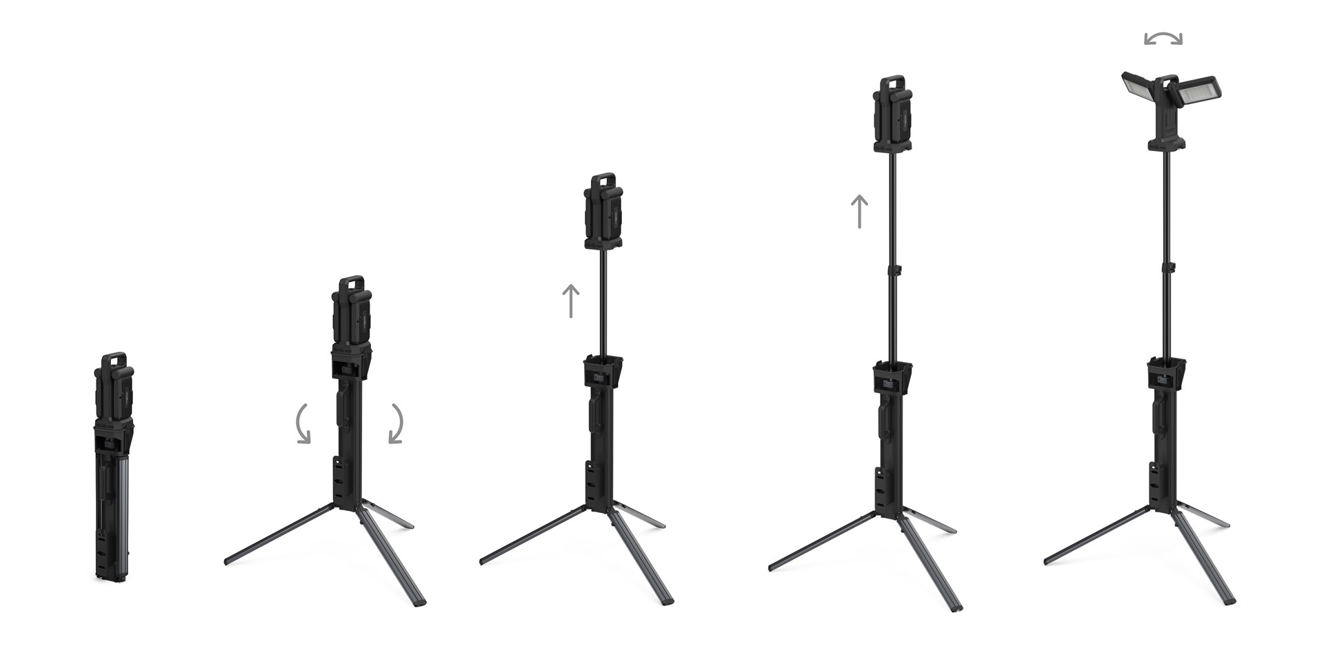 The WL11500R is your ideal companion for demanding jobs indoors and outdoors: home, workshop, construction site, or garden. Compact and portable, it features foldable legs, a telescopic function, and integrated ground spikes for ultimate flexibility – like having a built-in tripod.