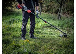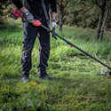 The SKIL 0256 is a brushless cordless brush cutter. The brushless motor is faster, stronger and lasts 10 times longer than a comparable brushed motor. You can use this tool with two accessories: a metal cutting blade or a two-line strimmer spool system. This makes the tool suitable for cutting brushwood, scrub, bramble or for cutting grass and weeds under bushes as well as on slopes and edges that can not be reached with a lawn mower. Equipped with a ‘Tap&Go’ line-feeding system, the SKIL 0256 with strimmer spool allows quick and easy line feed when necessary. All you need to do is press the button under the line spool onto the ground and the line is extended automatically. This cordless brush cutter has a softgrip bike-handle for extra working comfort. Additionally, the shoulder strap helps secure your control over the job by distributing the weight of the tool and optimising balance. Thanks to SKIL’s exclusive ‘Easy Storage’ design, this tool takes up minimal storage space after use. The SKIL 0256 CA is supplied with a blade guard, 23 cm brush cutter blade, trimmer head, shoulder strap, L wrench, socket wrench and 'EasyStorage' hook. The battery isn't included.