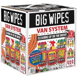 This is where the NEW Big Wipes Van System comes in. This all-in-one racking and dispensing solution contains all the Big Wipes essentials you need to fix problems fast, clean up quickly and effectively and get to the next job, in one handy kit.