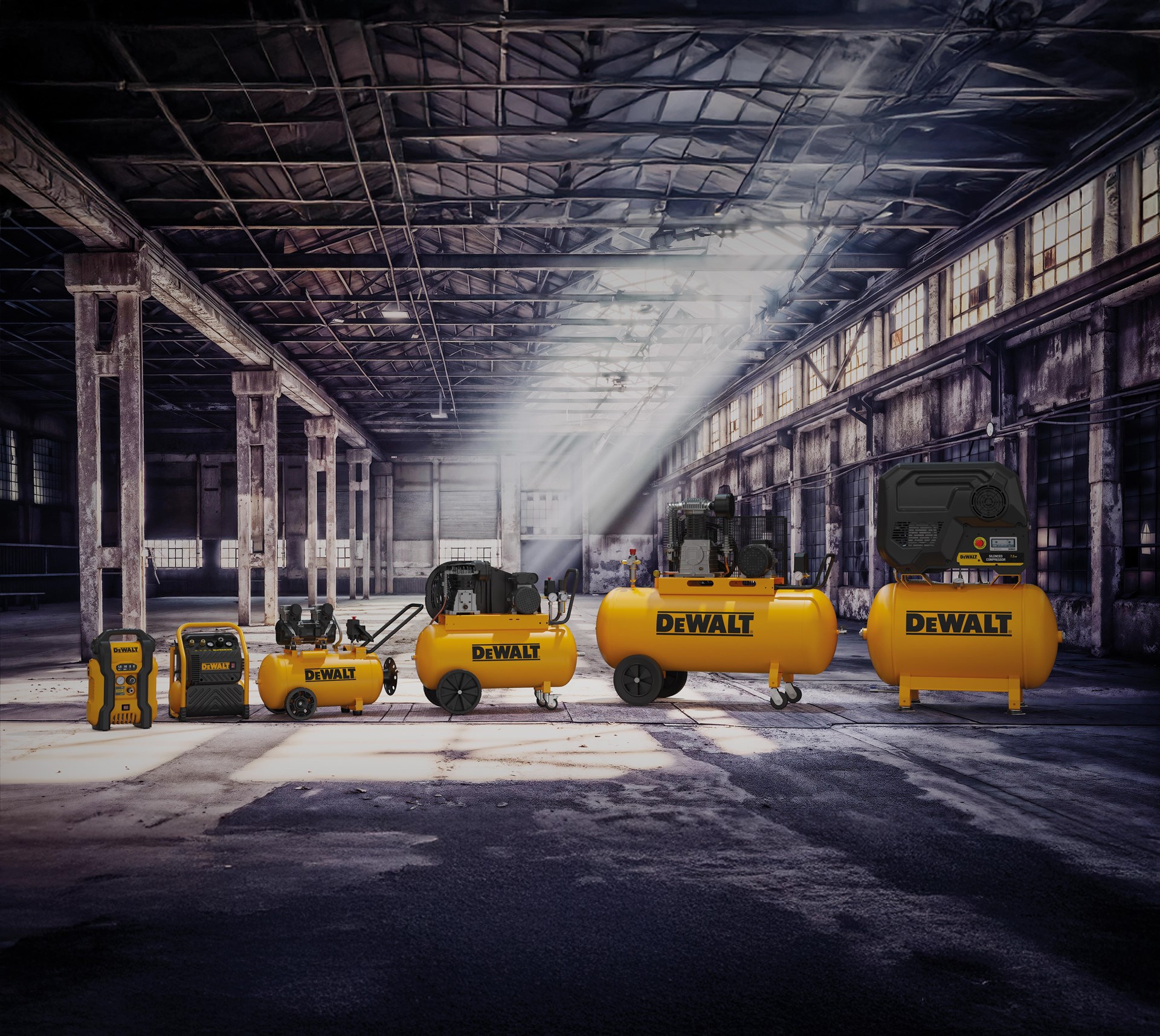 Experience the pinnacle of performance and reliability with the latest DEWALT compressors. Designed for durability to withstand the toughest construction environments, these new oil-free compressors feature an ultra-quiet motor.