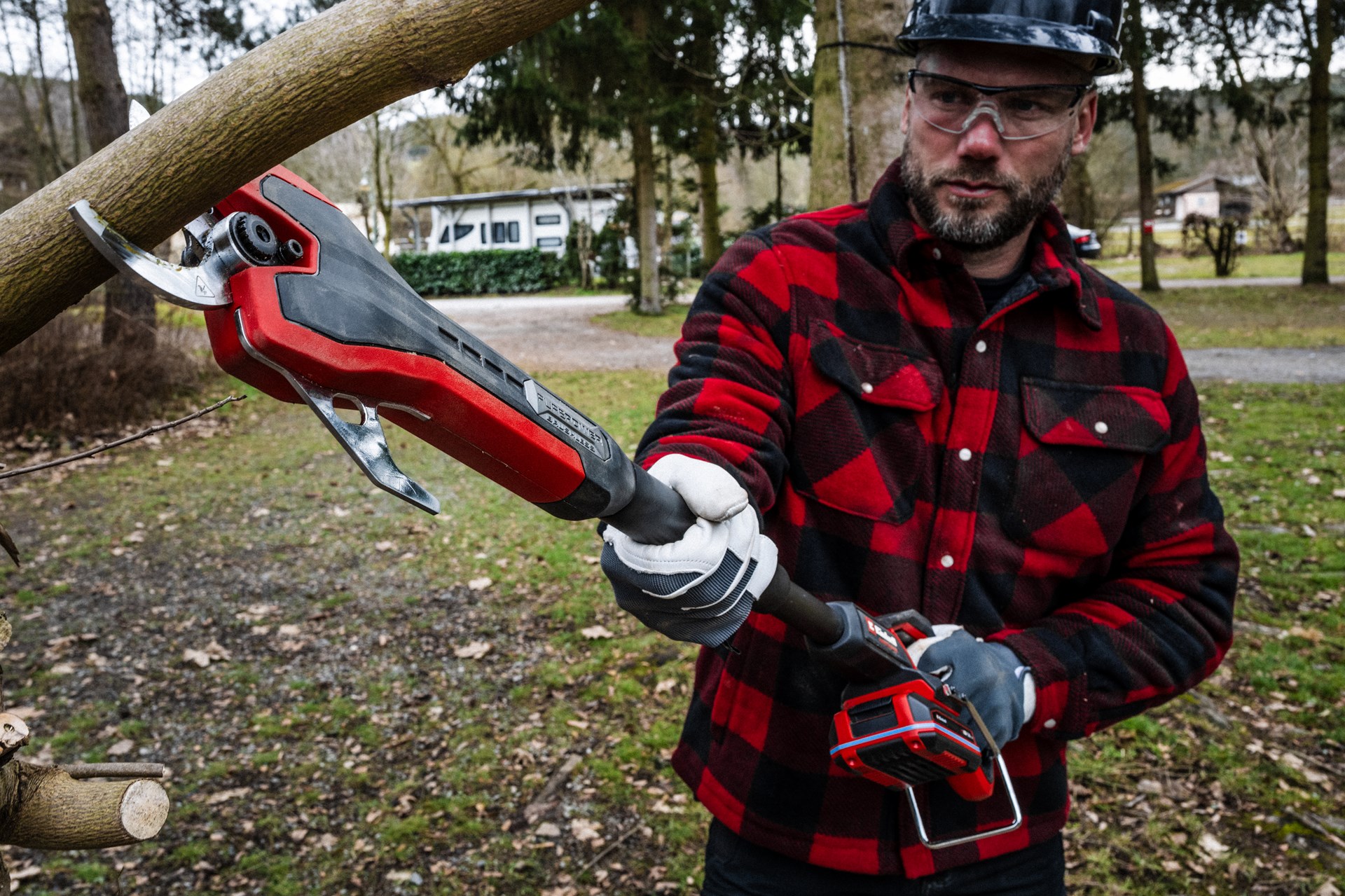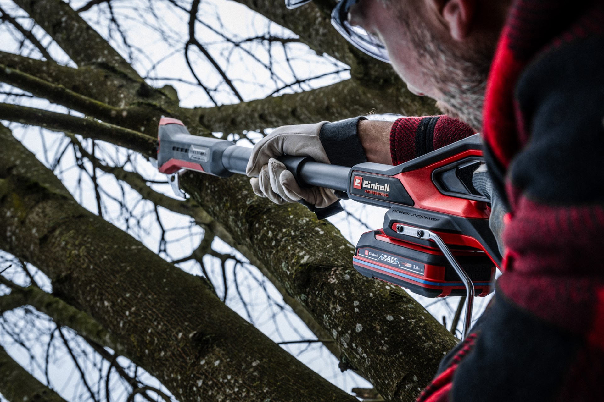 De Einhell PROFESSIONAL Accu Snoeischaar GP-LS 18/35 Li BL Solo is het ideale hulpmiddel voor het snoeien van rozen, struiken, vaste planten of fruitbomen – voor professionele tuiniers of in de eigen tuin. Als onderdeel van het Einhell Power X-Change accuplatform kan elke accu en lader in combinatie met deze snoeischaar worden gebruikt. De snoeischaar wordt aangedreven door een Einhell brushless motor. Deze brushless motor levert meer vermogen en langere levensduur dan een conventionele koolborstelmotor. Na online registratie geldt er 10 jaar garantie op de brushless motor. De accusnoeischaar knipt gemakkelijk takken tot een dikte van 35 mm op een werkhoogte tot 3 meter. Dunnere takken met een dikte tot 25 mm kunnen sneller worden geknipt. De snoeicapaciteit kan eenvoudig worden gewijzigd met één druk op de knop direct op de handgreep met softgrip-oppervlak. De hoogwaardige bypass-messen van SK5-staal zorgen voor zuivere en scherpe sneden zonder de takken te kneuzen. De messen kunnen gemakkelijk direct op de handgreep worden bediend. Een ingebouwde robuuste metalen haak kan worden gebruikt om de geknipte takken uit de boom te verwijderen. Een stevige kunststof hoes zorgt voor een veilige opslag. Een monteerbare stalen beugel zorgt voor een optimale bescherming van de accu. De Einhell PROFESSIONAL Accu Snoeischaar GP-LS 18/35 Li BL Solo wordt geleverd zonder accu en oplader. Deze zijn apart verkrijgbaar, bijvoorbeeld als handige startset.